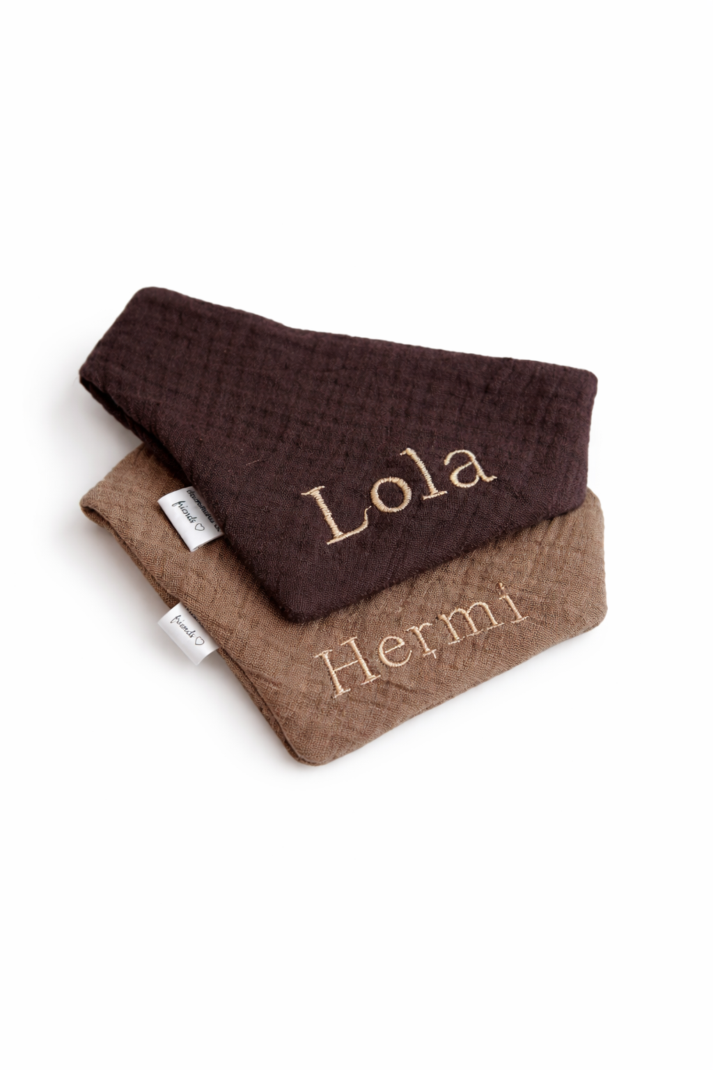 Unsere Musselin-Halstücher werden mit viel Liebe zum Detail von Hand gefertigt – für alle, die Wert auf Qualität, Stil und Individualität legen. Der weiche, atmungsaktive Baumwollstoff schmiegt sich angenehm an den Hals deines Lieblings und sorgt für einen extra süßen Look im Alltag oder beim nächsten Spaziergang. 💛